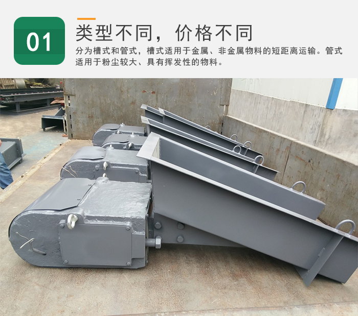 電磁振動給料機分為槽式和管式,槽式電磁振動給料機適用于金屬、非金屬物料的短距離運輸,管式電磁振動給料機適用于粉塵較大、具有揮發(fā)性的物料,以及300℃以下的高溫物料,還可以將幾節(jié)輸送管連接起來同步輸送。不同類型的電磁振動給料機價格是不同的,用戶需要根據(jù)篩分物料及實際需求進行選擇。